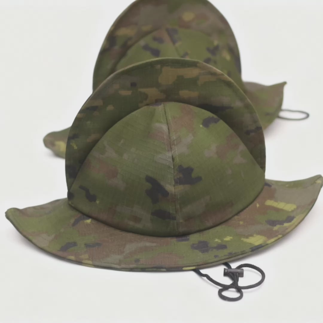 nos hemos hecho con unos pocos metros del tejido oficial del ejército español, en ambas versiones, el árido, y el boscoso. El M09 del Ejército español, el tejido principal es un “ripstopº de algodón con poliéster, súper ligero pero resistente a tirones y desgarros. También tiene protección infrarroja para no ser detectado en visores nocturnos, y un acabado especial anti-localización. En resumen, prioriza durabilidad, comodidad en campo y camuflaje efectivo.